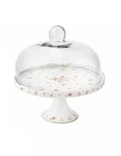 Alzata Portatorta Porcellana Fiori Nonna Rosa Con Cupola Vetro
