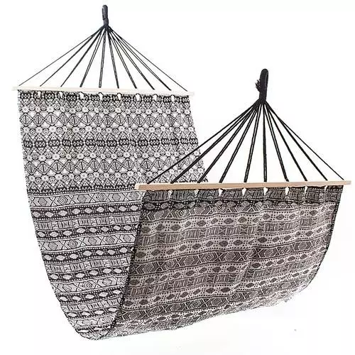 Amaca in tessuto di cotone con stampa etnica bianca e nera.