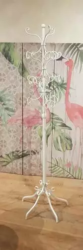 Appendiabiti da terra a stelo in ferro battuto bianco forgiato con lavorazione artigianale.