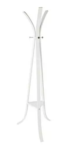 Appendiabiti a piantana da terra in stile moderno realizzato in legno multistrato di betulla laccato bianco con appendini in acciaio cromato.