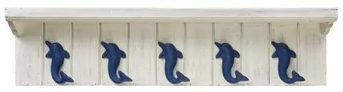 Appendiabiti Delfini Blu Mensola Legno Bianco 5 Ganci A Parete