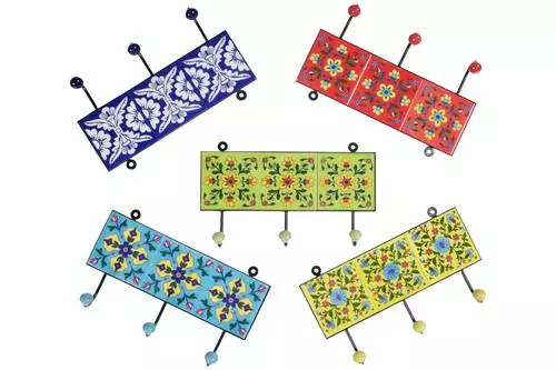 Appendiabiti Maioliche Ceramica Colorate 3 Ganci A Parete Cm30