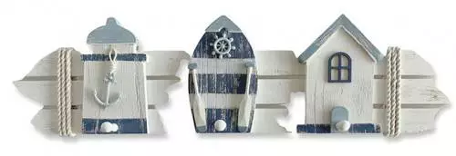 Appendiabiti Marinaro Legno Bianco Azzurro 3 Ganci A Parete