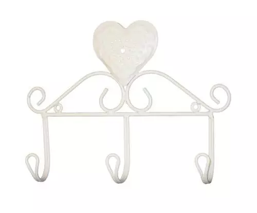 Appendiabiti Parete Cuore 3 Ganci Ferro Bianco Shabby