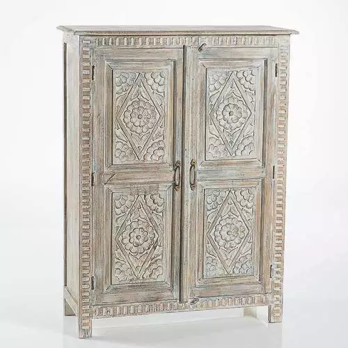 Armadio in legno di mango con ante intarsiate a mano.