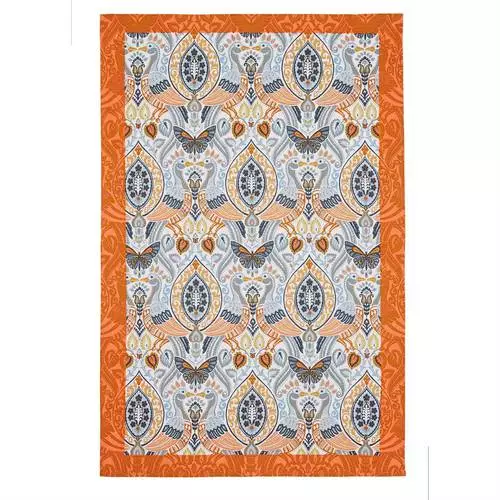 Asciugapiatti in 100% cotone a marchio Ulster Weavers della collezione Cotswold, design che trae ispirazione dal movimento inglese delle arti e dei mestieri: presenta uccelli di fuoco immaginari stampati in uno stile di stampa a blocchi ripetitivo, e osservando da vicino si noterà che il motivo è composto da fiori e foglie vorticose.