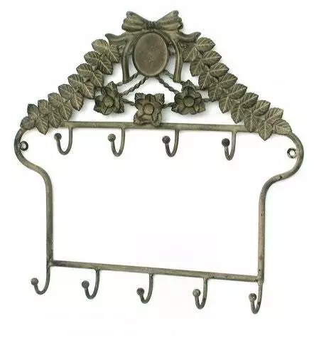 Attaccapanni Ferro Grigio Fiocco E Foglia Shabby 9 Ganci Da Parete