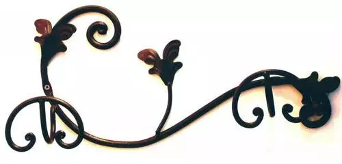 Appendiabiti 2 ganci da parete in ferro battuto forgiato colore nero dalle sfumature marroni.
