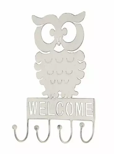 Attaccapanni Gufo Bianco Ferro 4 Ganci A Muro