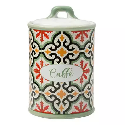 Barattolo da cucina per il caffè con chiusura ermetica, in ceramica colorata con decorazioni ispirate alle piastrelle Siciliane.