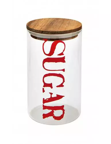 Barattolo Vetro Tappo Legno Scritta Rossa Sugar