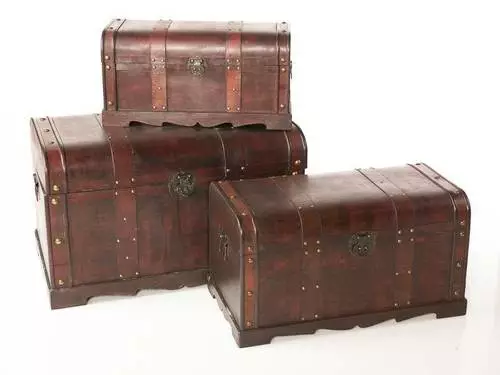 Baule bombato in legno noce vecchio stile dal sapore coloniale,con maniglie e chiusura in metallo.
