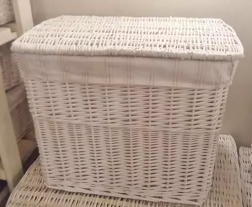 Baule in vimini laccato bianco.