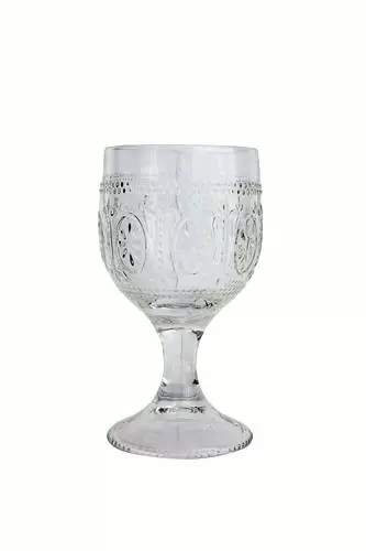 Bicchiere Calice Vetro Trasparente Rilievo Fiore 4pz