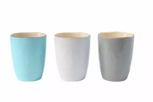 Completo 6 bicchieri in ceramica gres porcellanato: 2 bianco, 2 grigio e 2 turchese.