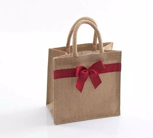 Borsina in tessuto di juta con soffietto e manici.