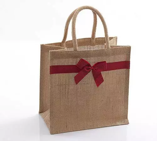 Borsina in tessuto di juta con soffietto e manici.