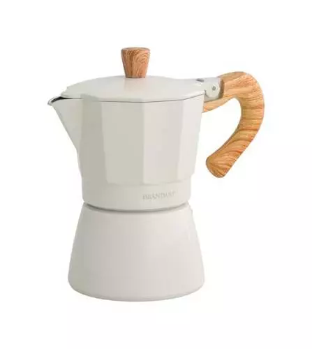 Inizia la giornata al 100%, con le nuove caffettiere Naturalexpress firmate Brandani! Raffinato color avorio su bricco e caldaia ed un grintoso color legno su manico e pomello: eleganza e naturalezza, in una graziosa Moka da 3 tazze che trionferà al meglio sia in tavola che in cucina. Sinuosa, moderna, particolareggiata e adatta non solo al classico fornello a gas ma anche per piani ad induzione: il 100% della comodità, in un concentrato di design a portata di…pausa caffè!