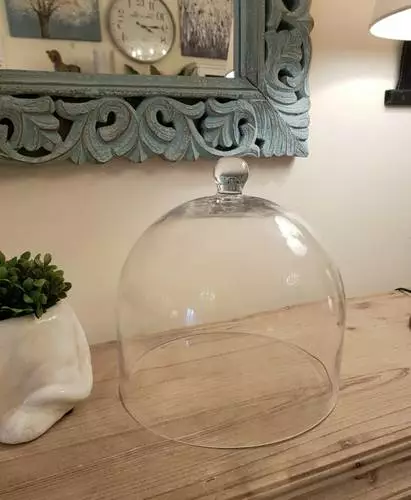 Campana in vetro trasparente per doci e copri vivande.