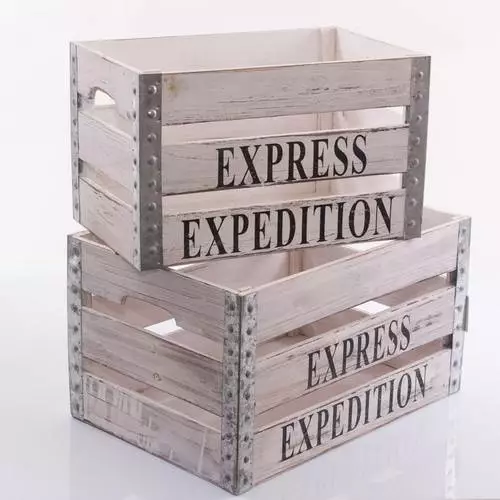 Cassetta in legno di abete sbiancato con finiture angoli in metallo zincato.