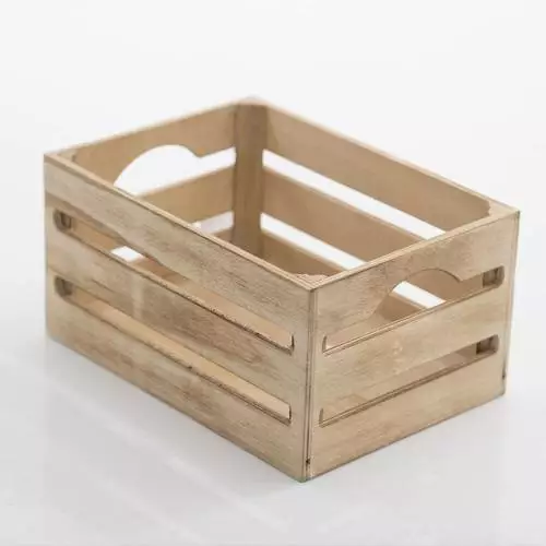 Cassetta in legno di abete naturale colore nocciola a listelli modello piccolo tipo frutta.