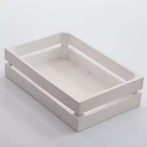 Cassetta rettangolare in legno di abete dipinto bianco a listelli tipo frutta.