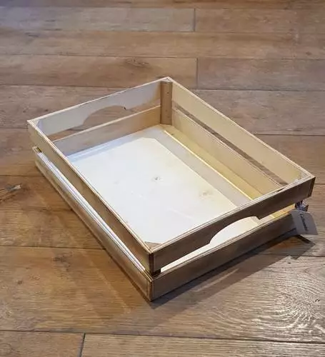 Cassetta Legno Naturale Fiammato Bassa Con Maniglie 37x28x9h