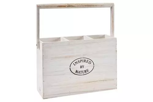 Cassetta portabottiglie con manico a 3 posti in legno di abete sbiancato finitura effetto shabby.