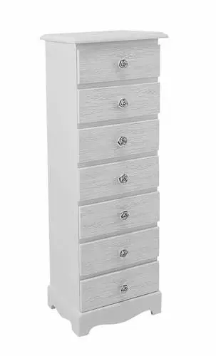 Cassettiera in legno di pino verniciato bianco con finitura decapata.