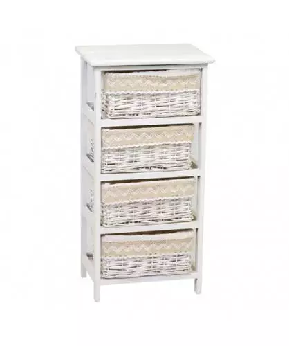 Cassettiera Legno Bianco 4 Cassetti Vimini Con Fodera