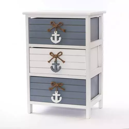 Cassettiera Legno Marinara Bianco E Azzurro 3 Cassetti