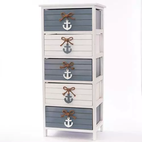 Cassettiera Legno Marinara Bianco E Azzurro 5 Cassetti