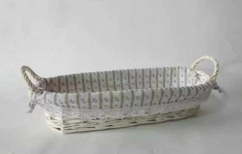 Cestino Ovale Vimini Bianco Fodera Rose E Righe 42×17