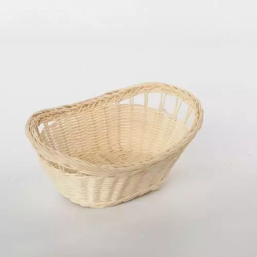 Cestino di forma ovale intrecciato in midollino naturale.