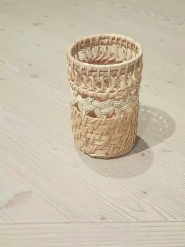 Cestino di forma cilindrica intrecciato in rattan e midollino naturale, perfetto porta grissini per la tavola.