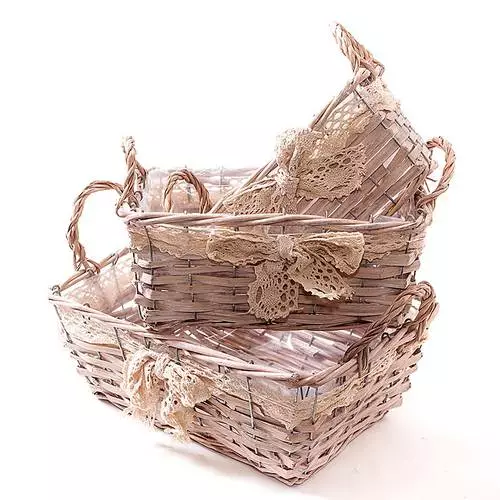 Cesto Vimini Naturale Da Armadio Fodera Fiori Applicazione Cuore