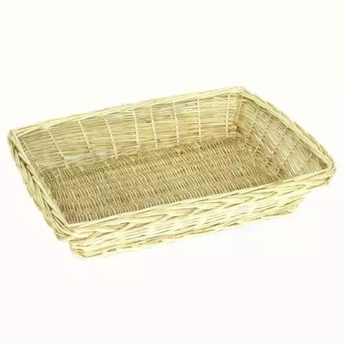 Cestino a vassoio intrecciato in vimini naturale non trattato. Idoneo ad esssere utilizzato per prodotti da forno.