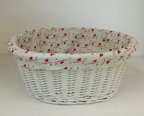 Cesto Bici Ovale Vimini Bianco Fodera Cuori Rossi