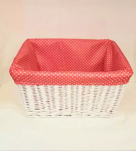 Cesto Bici Vimini Bianco Fodera Pois Rossa 46×36