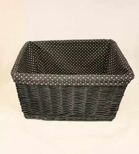 Cesto Bici Vimini Nero Fodera Pois 45×35