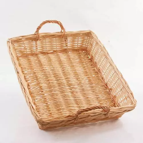 Cesto Vassoio Vimini Naturale Bordo Treccia Con Manici 54×45