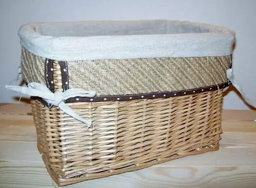 Cesto Armadio Vimini Naturale Rettangolare Fodera Quadretti Beige