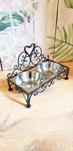 Ciotole Cane Gatto Supporto Ferro Nero Con Cuore
