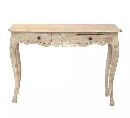 Consolle in stile francese con cassetti in legno di cedro naturale dalla finitura shabby sbiancata.