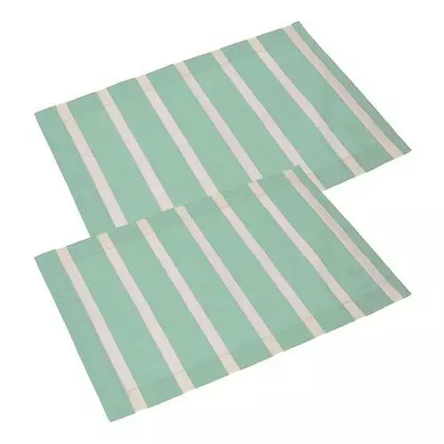 Coppia Tovaglietta Americana Cotone Verde Acqua Righe Bianche