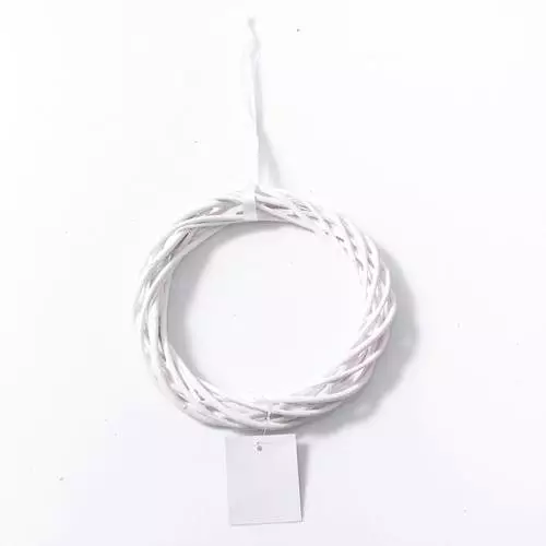Corona intrecciata in vimini laccato bianco con nastrino.