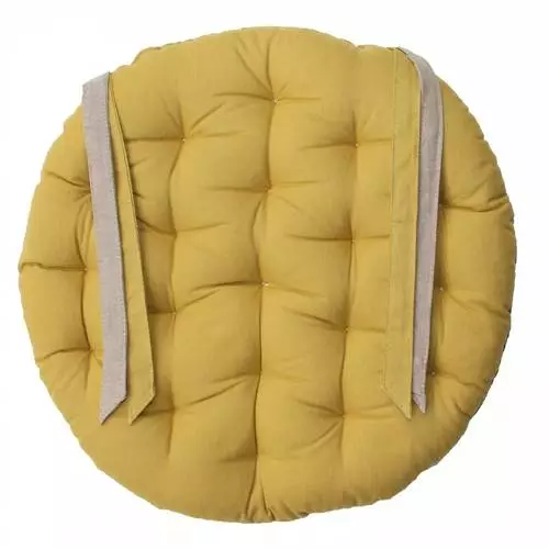 Cuscino di forma tonda per sedia trapuntato bicolore con fodera in cotone e imbottitura in poliestere, completo di cordoncini per fissarlo alla sedia, lavabile in lavatrice a 30 gradi senza necessità di sfoderarlo.