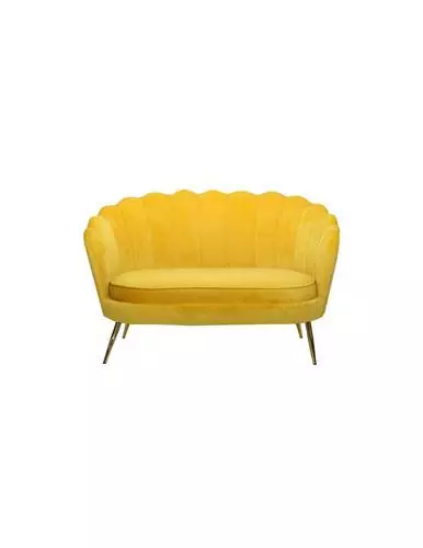Divano due posti da soggiorno in stile glamour con rivestimento in tessuto effetto velluto.