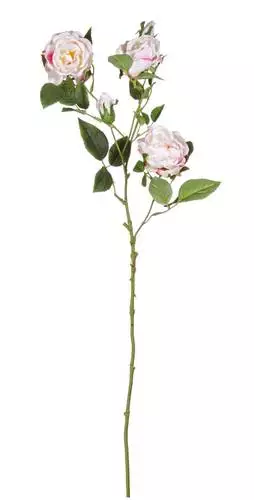 Fiore decorativo artificiale in tessuto, gambo e foglie in polietilene con anima in ferro.