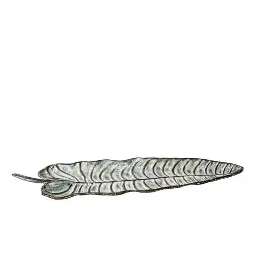Vassoio a forma di foglia in metallo anticato in stile vintage.